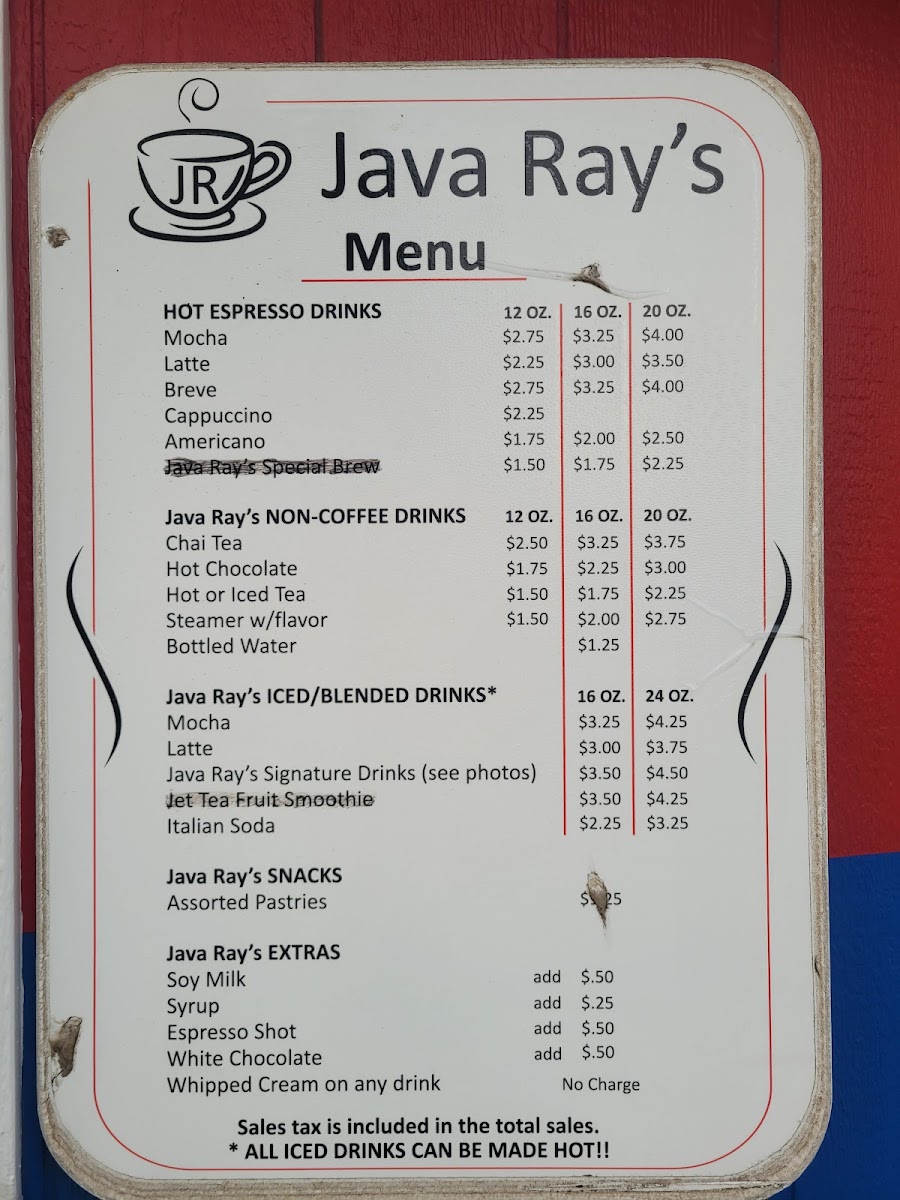 Java Ray's Iced/Blended Drinks